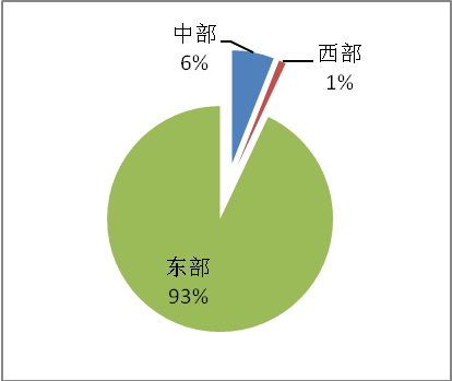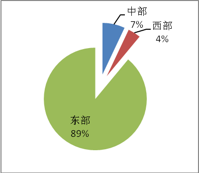 为了更好地释南京大学工程管理学院毕业生的去向,我们对毕业生流向作了统计分析。通过归集整理2013届本科生和硕士生所在地数据,并且按照国家东、中、西部地区进行划分,得到以下图表: