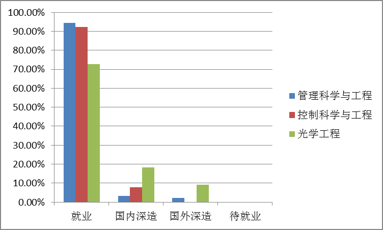 2013年硕士毕业生去向结构基本保持稳定,绝大部分毕业生(92.12%)选择直接就业,且全部成功就业。