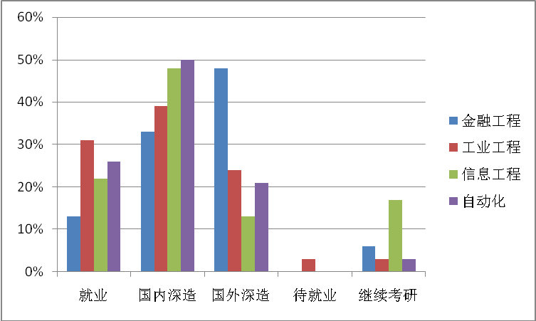 学院2013届国内读研的本科毕业生中,绝大部分(80.77%)选择在本校继续深造,其余毕业生则选择清华、上交等5所国内重点高校继续深造(具体情况如下表所示)。