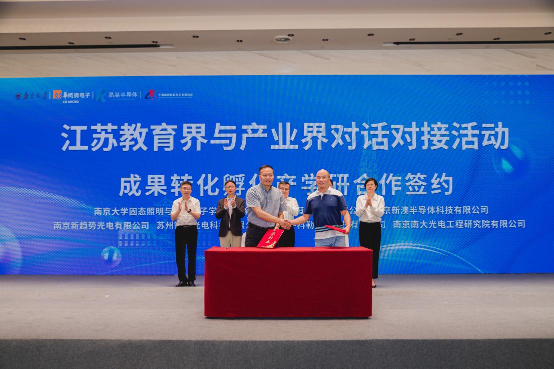 大会同期举行了南京大学固态照明与节能电子学协同创新中心与华润微电子、江苏省照明电器协会、能华微电子等单位战略合作协议签署仪式,这一合作模式的建立,将有助于促进教育链、人才链与产业链、创新链的有效衔接,标志着教育与产业融合迈向了新的高度。