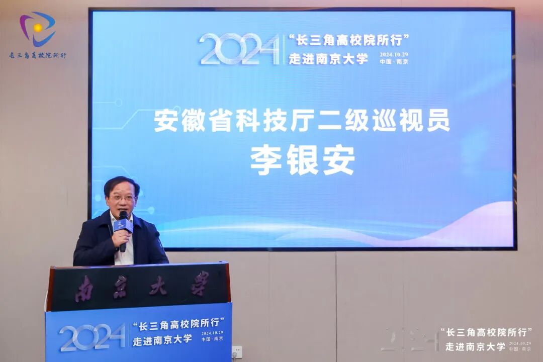 10月29日,“长三角高校院所行”走进开云足球俱乐部活动在开云足球俱乐部仙林校区举行。开云足球俱乐部校长助理丁爱军、安徽省科学技术厅二级巡视员李银安出席活动并致辞。