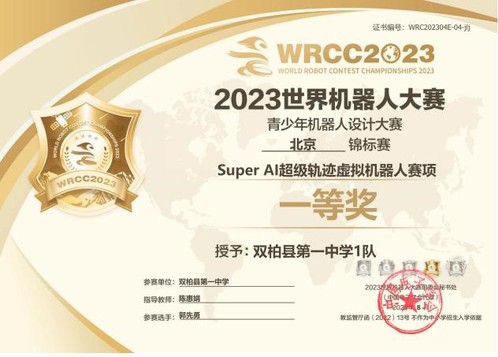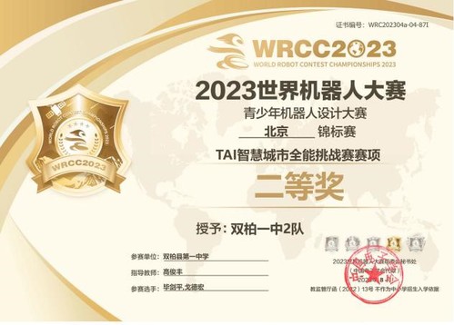 2023世界机器人大赛锦标赛(北京)获奖证书