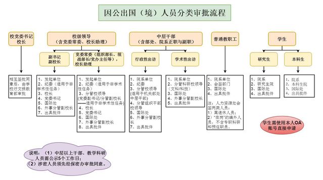 因公出国(境)人员申报和审批严格按照“关于印发《南京大学因公出国(境)审批管理办法》的通知”(南字发[2019]31号)执行。