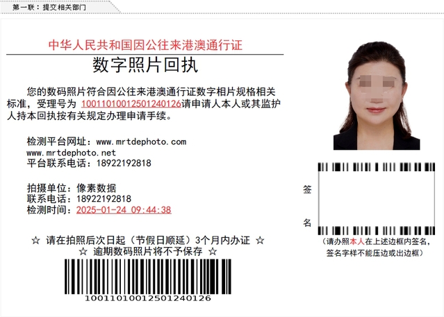 (2)办理因公港澳通行证无需纸质照片,需通过照相馆(如大唐)拍摄白底专用证件照或自拍后将照片上传至网站https://www.idphotoplus.com/pages/licence进行缴费检测后获取20位照片回执受理号。