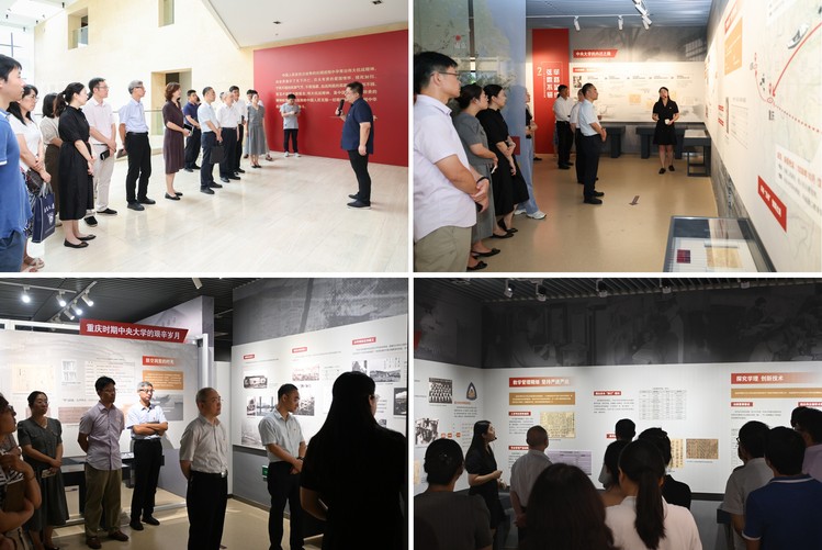 活动中,大家首先参观了《烽火岁月中的教育丰碑——南京大学·重庆大学抗战时期办学专题展》。校档案馆馆长、校史研究室主任王俊就这次布展的缘起、筹备历程、主要内容和精神内核等作了专题介绍。展览以大量档案史料、图片影像和珍贵实物,生动展现了南京大学前身及前辈学人们在烽火岁月中“伟大抗战精神”与“中国大学精神”。从校园爱国旗杆事件到动物大军千里迁徙的壮举,从南大学人在重庆、成都时期的教学科研、社会服务到“红色书箱”与新青社有组织的学生抗争斗争活动,每一块展板、每一帧影像都让人沉浸动容。大家在展厅中穿越时空,深入了解南京大学前身中央大学、金陵大学等在抗战期间筚路蓝缕、弦歌不辍的办学历程,深刻感悟前辈学人在战火中保存学脉、勤勉治校、教书育人、服务社会的坚定信念和高尚情操。尤其是看到生命科学相关学科的前辈学人在艰苦困顿岁月里创造的一个个教育科研奇迹,更是让大家既倍感振奋又深受鞭策。