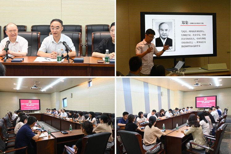 在主题研学环节,纪勇和生化系教师党支部书记丁智结合生科院编印的《南京大学励志绘本·生命科学篇》相关内容,分别以秉志教授、郑集教授等创院前辈为代表,动情讲述了前辈学人在民族危难之际科研报国、育人为先的信念与担当,彰显了南大学人为守护中国高等教育火种不灭而舍身忘我的砥砺气节与科学精神。他们不仅在学术上成就卓越,更以实际行动书写了“祖国至上、人民至上、坚贞不屈、科教报国”的壮丽篇章,已构成南大精神的重要组成部分。