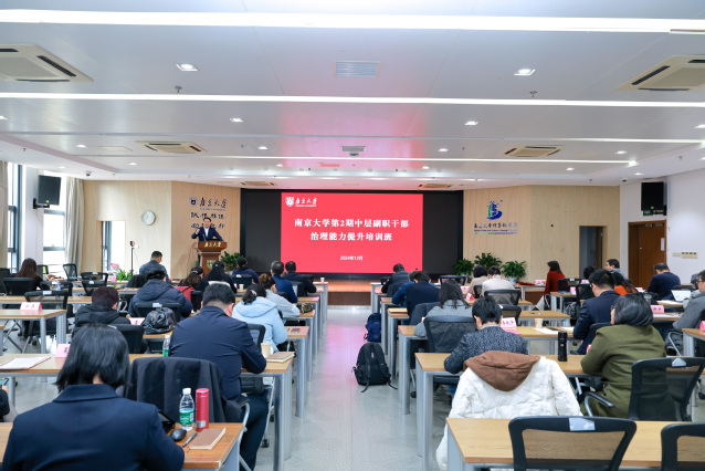 陈云松充分肯定了本次培训班的重要意义和扎实成效,点赞了43位参训学员的辛勤付出与学习收获。他指出,新时代呼唤新作为、新征程须有新担当,要进一步提高政治站位,深刻领悟“两个确立”的决定性意义,增强“四个意识”、坚定“四个自信”、做到“两个维护”,深入学习贯彻党的二十届三中全会精神和全国教育大会精神,理解南京大学的使命,理解作为干部的使命,理解本职岗位的使命,担当作为,拼搏奉献,不负组织托付。他强调,中层干部是学校事业改革发展的中坚力量,要进一步提升管理能力,一是视野要更宽,坚持依靠学习增强本领,既要“懂文化”,也要“懂南大”,不断从百廿校史中汲取“守正创新”的智慧与勇气,持续拓展自己的知识能力和人文素养;二是胸怀要更宽,既要做到担责不避事、补台不越位,还要带好工作队伍、育强后备力量,为学校发展蓄势赋能;三是思路要更宽,持续深化对国情、校情的了解,锚定国家重大战略需求,开阔视野、拓展资源,主动投身强国建设、民族复兴的伟大事业;四是服务要更宽,把服务融入管理,甘于善于乐于服务教师、服务学生、服务同事,服务好学校事业改革发展。最后,他寄语全体学员,“奋进行动”是每一个人干出来的,勉励大家把本次培训班的收获应用于工作中,只争朝夕、夙夜为公,不负担当使命、不负职业生涯。