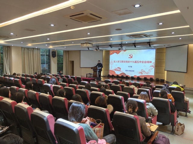 25日下午,哲学系副主任孙乐强教授为全体学员作《深入学习贯彻党的十九届五中全会精神》专题报告。孙教授从规划《建议》的基本框架和主要内容、规划《建议》的核心要义和学思用贯通、知信行统一三个方面,为全体学员深入解读了党的十九届五中全会精神。